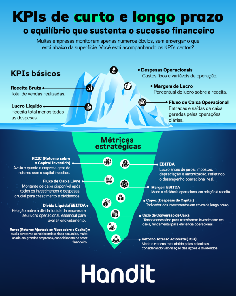 O ROIC indica quanto a empresa gera de retorno sobre o capital aplicado em seus negócios. Ele é um dos KPIs mais estratégicos no pós-orçamento, pois mostra se os recursos estão sendo alocados de forma eficiente.