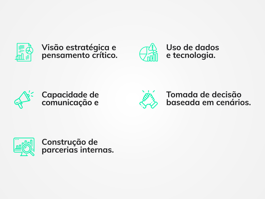 Desenvolvendo visão estratégica, capacidade analítica, comunicação, domínio de tecnologia e atuação colaborativa com outras áreas.